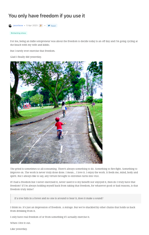 Day 825 - You only have freedom if you use it - golifelog.com/posts/you-only-… #lifelog