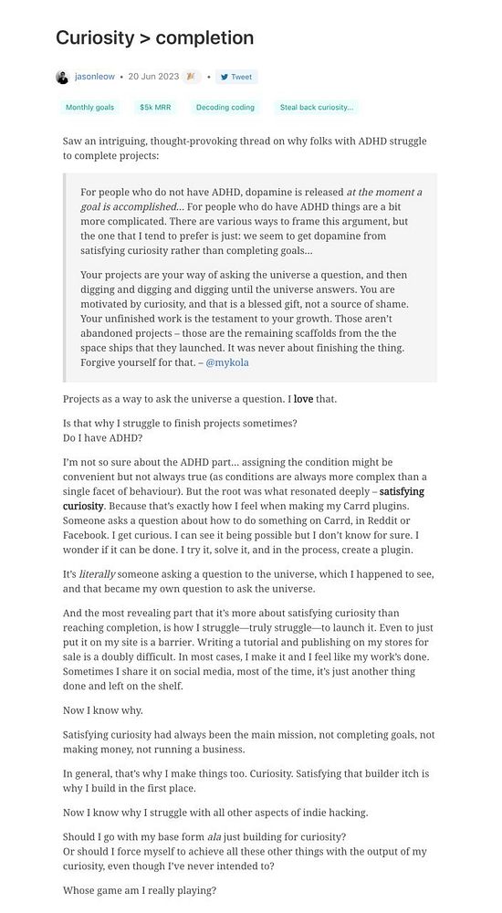 Day 901 - Curiosity > completion - golifelog.com/posts/curiosity… #lifelog