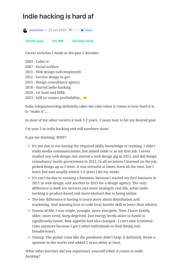 Day 903 - Indie hacking is hard af - golifelog.com/posts/indie-hac… #lifelog