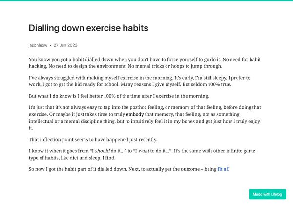 Day 908 - Dialling down exercise habits - golifelog.com/posts/dialling-… #lifelog