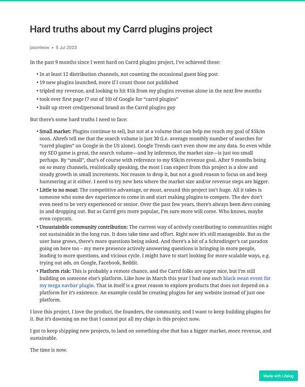 Day 916 - Hard truths about my Carrd plugins project - golifelog.com/posts/hard-trut… #lifelog