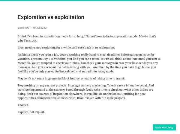 Day 921 - Exploration vs exploitation - golifelog.com/posts/explorati… #lifelog