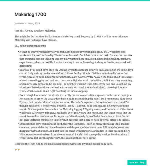 Day 960 - Makerlog 1700 - golifelog.com/posts/makerlog-… #lifelog