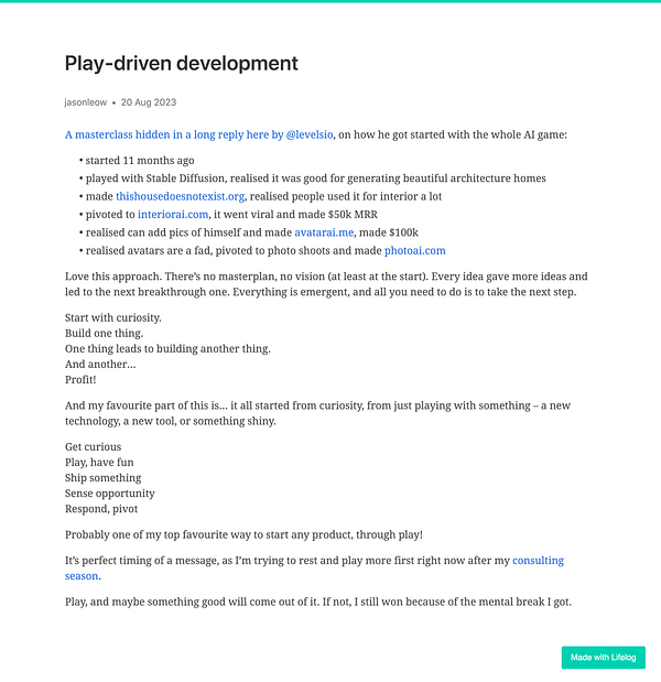 Day 962 - Play-driven development - golifelog.com/posts/play-base… #lifelog