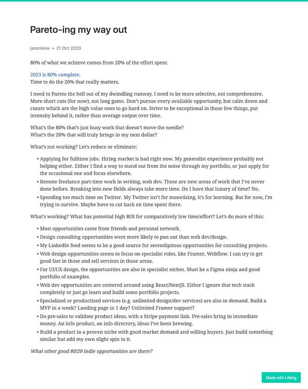 Day 1024 - Pareto-ing my way out - golifelog.com/posts/pareto-in… #lifelog