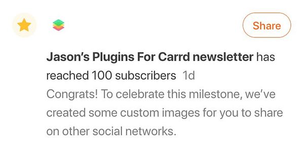 Hit 100 subscribers on newsletter! Open rate consistently 60% or higher πŸ“ˆ #pluginsforcarrd