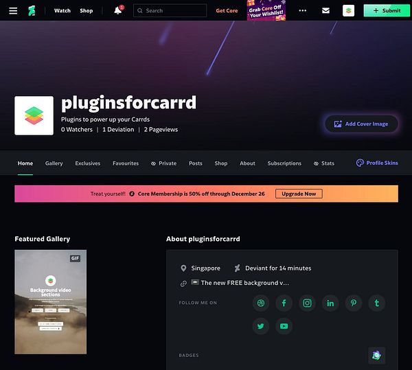 🐣 New marketing distribution experiment: Set up account and profile page on Deviantart #pluginsforcarrd