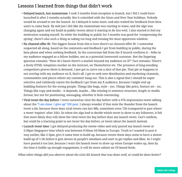 Day 1127 - Lists Kit launch retro - golifelog.com/posts/lists-kit… #lifelog