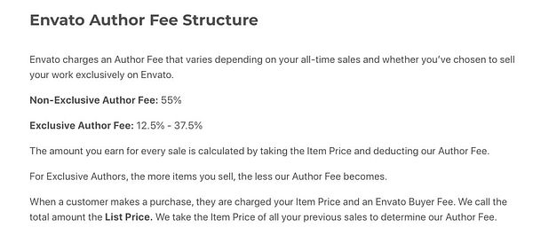 Researched and read up on Envato's fee structure. If non-exclusive selling, I have to give fifty-five fking percent - yes 55%!! WOW. #listskit
