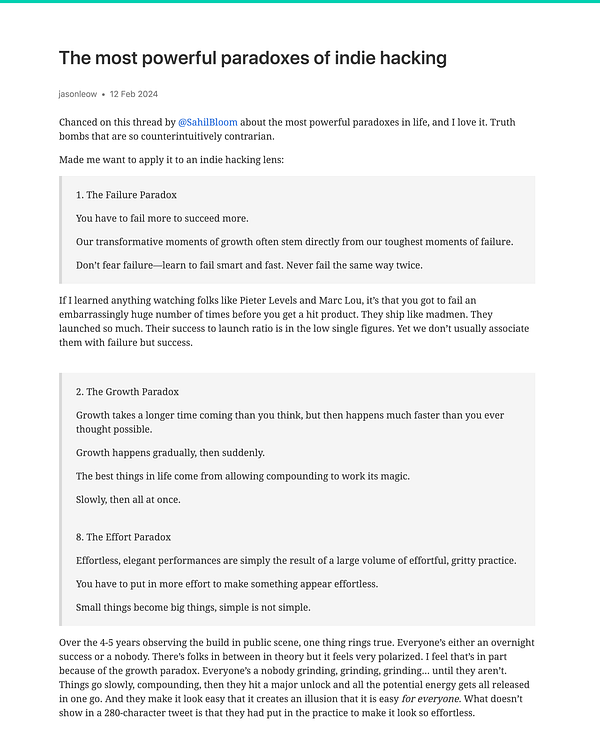 Day 1138 - The most powerful paradoxes of indie hacking - golifelog.com/posts/the-most-… #lifelog