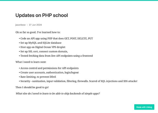 Day 1274 - Updates on PHP school - golifelog.com/posts/updates-o… #lifelog