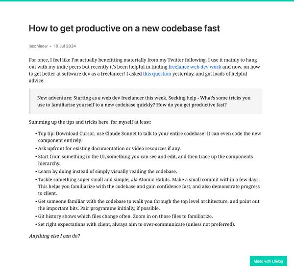 Day 1287 - How to get productive on a new codebase fast - golifelog.com/posts/how-to-ge… #lifelog