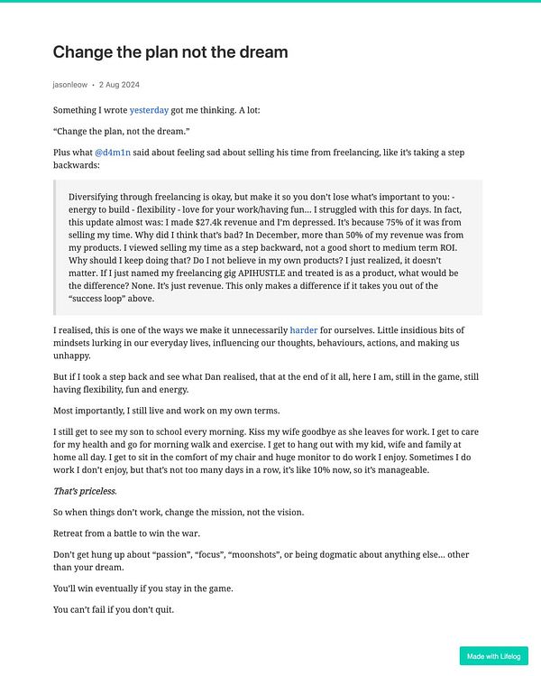 Day 1310 - Change the plan not the dream - golifelog.com/posts/change-th… #lifelog
