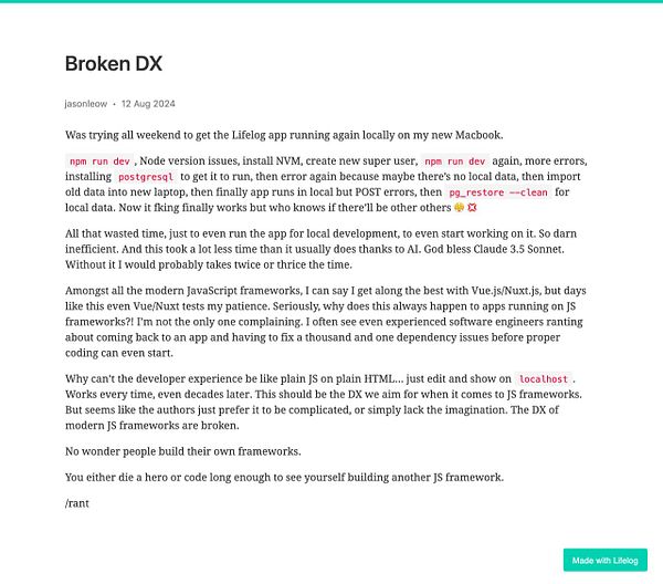 Day 1320 - Broken DX - golifelog.com/posts/broken-dx… #lifelog #decodingcoding