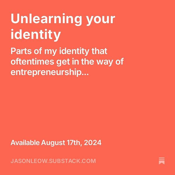 Published weekly Saturday newsletter - Unlearning your identity - jasonleow.substack.com/p/unle… #indiejourney