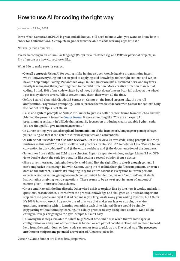Day 1337 - How to use AI for coding the right way - golifelog.com/posts/how-to-us… #lifelog #decodingcoding