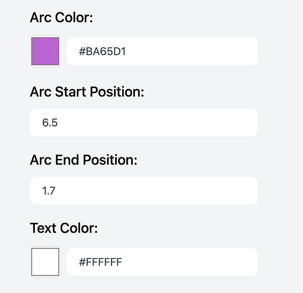 Got more feedback - Added input fields for arc and text color. Also made default preview image grayed out to signal it's a placeholder (while I figure out how tf to edit it on page load) #indiejourney #profilephotoeditor