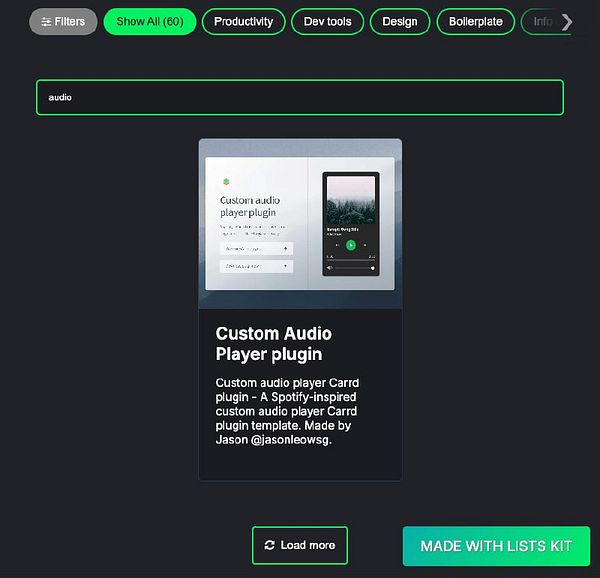 Added 1 new item Custom Audio Player Carrd plugin (customaudioplayer.carrd.co), a Spotify-inspired custom audio player Carrd plugin template by me @jasonleowsg, to the Commit365 directory (listskit.com/commit365) #listskit #commit365