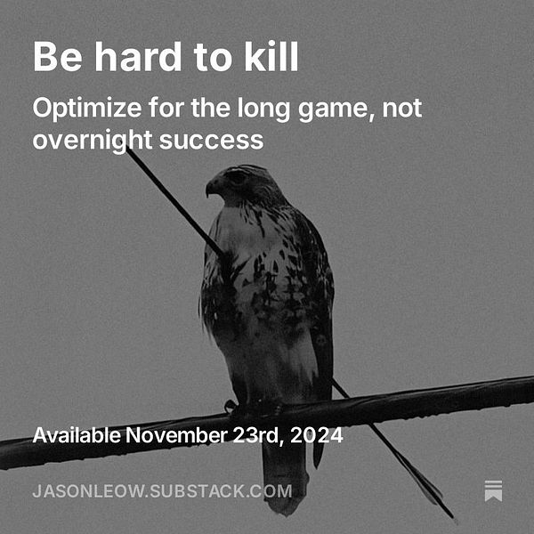 Published weekly Saturday newsletter - Be hard to kill - jasonleow.substack.com/p/be-h… #indiejourney