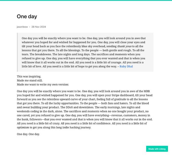 Day 1428 - One day - golifelog.com/posts/one-day-1… #lifelog
