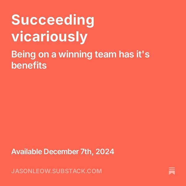 Published weekly Saturday newsletter - Succeeding vicariously - jasonleow.substack.com/p/succ… #indiejourney