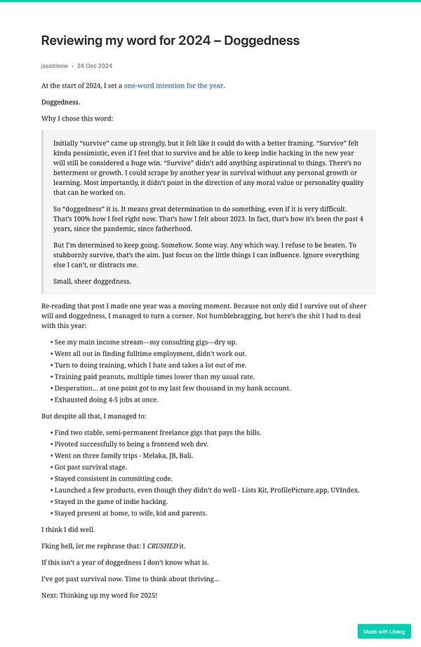 Day 1454 - Reviewing my word for 2024 – Doggedness - golifelog.com/posts/reviewing… #lifelog