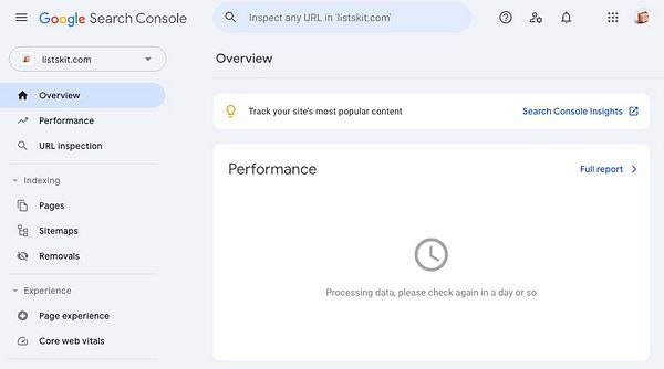 Registered for Google Search Console account, add sitemap, kicked started page indexing #listskit