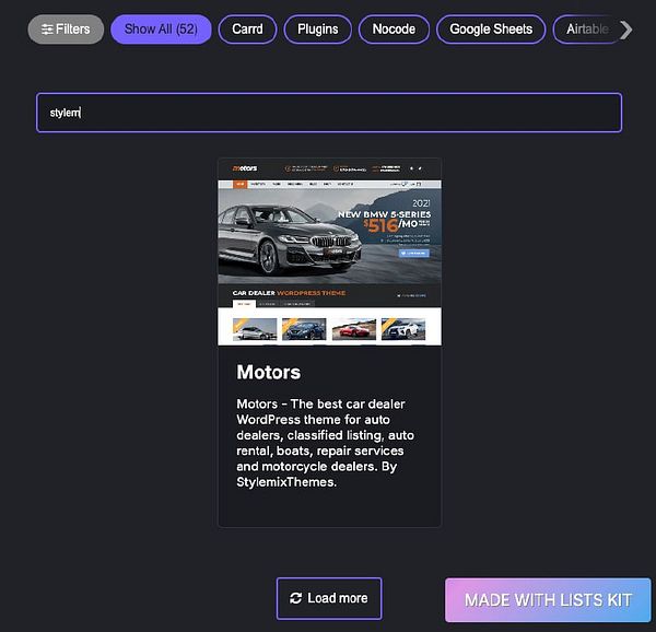 Added 1 new item Motors (stylemixthemes.com/motors), a WordPress directory theme by StylemixThemes, to the Directory Starters directory (listskit.com/directorystarters) #listskit