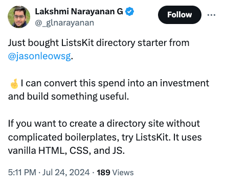 Sold yet another discounted Premium license (U̶S̶$̶1̶9̶7̶ US$97) for Lists Kit boilerplate... thanks @_glnarayanan ! #listskit