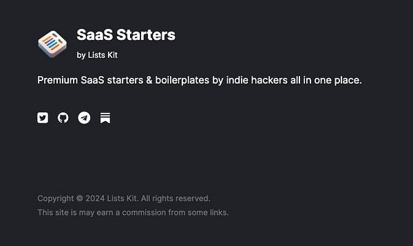 Added copyright year and affiliate disclaimer to the main landing page (listskit.com) and also SaaS Starters directory (listskit.com/saasstarters), since I started adding affiliate links #listskit