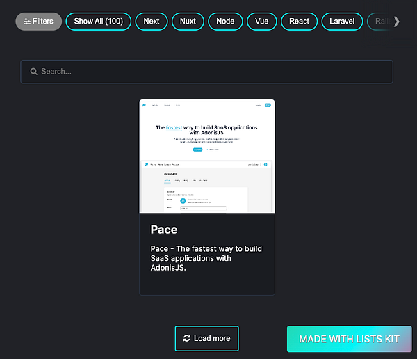 Added 1 new item Pace (adonispace.dev), an AdonisJS boilerplate by @ammezie, to the SaaS Starters directory (listskit.com/saasstarters). And with this, there's 100 items in the directory! 🥳 #listskit