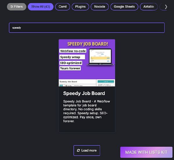 Added 1 new item Speedy Job Board (petecodes.gumroad.com/l/speed…) by @petecodes, a Webflow job board directory template, to the Directory Starters directory (listskit.com/directorystarters) #listskit