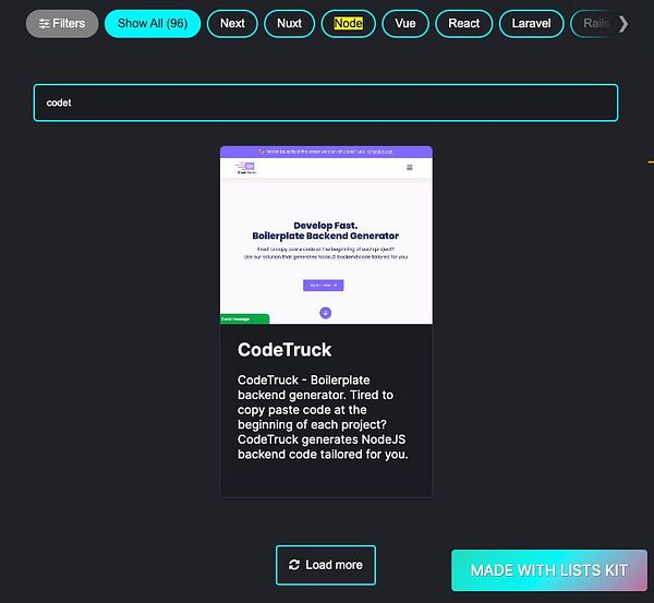 Added 1 new item CodeTruck (codetruck.io), a Node.js boilerplate by @radu_dumitrescu2, to the SaaS Starters directory (listskit.com/saasstarters) #listskit