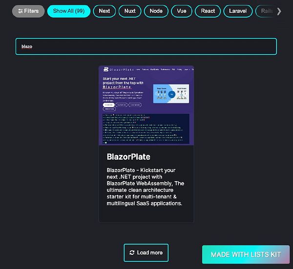 Added 1 new item BlazorPlate (www.blazorplate.net), a .NET boilerplate, to the SaaS Starters directory (listskit.com/saasstarters) – 1 more to 100! #listskit