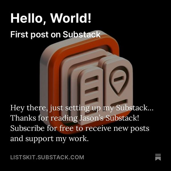 Set up Substack (listskit.substack.com/), post first placeholder post - listskit.substack.com/p/hello… #listskit
