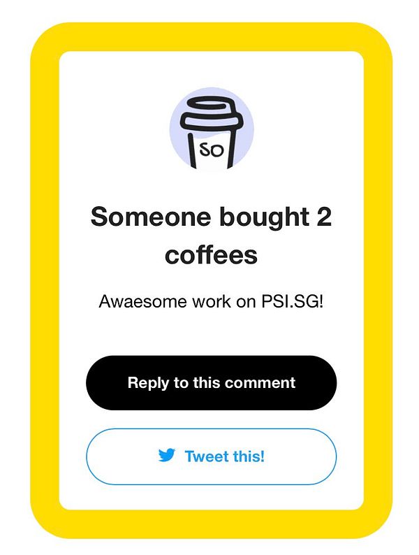 Received 2 coffees US$10.59 for building psi.sg - it's been a while! #psisg #socialimpactpatronage