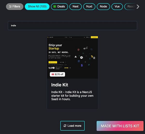 Removed 1 old listing and added Indie Kit (indiekit.pro/), a NextJS SaaS boilerplate by @cjsingg, to the SaaS Starters directory (listskit.com/saasstarters) #listskit