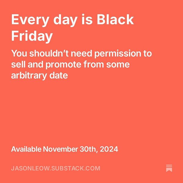 Published weekly Saturday newsletter - Every day is Black Friday - jasonleow.substack.com/p/ever… #indiejourney
