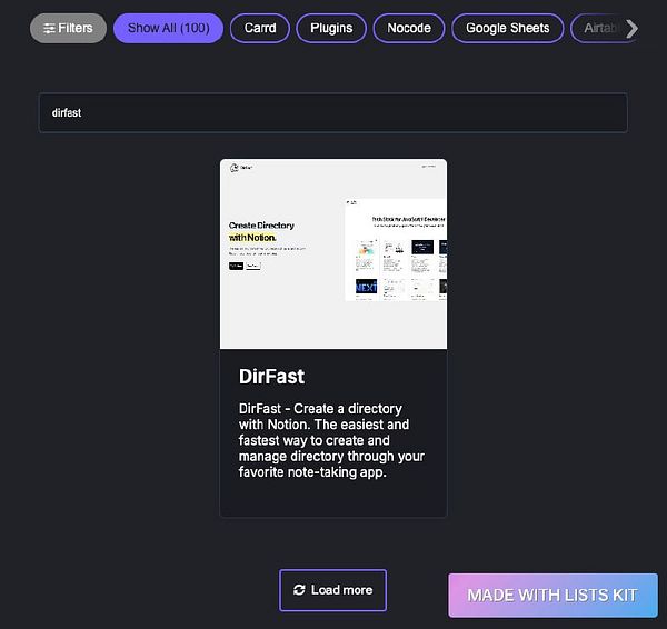 Removed 1 outdated item, added 1 new item DirFast (dirfa.st), a Notion-based directory website builder by @malukashevich, to the Directory Starters directory (listskit.com/directorystarters) #listskit