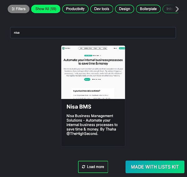 Added 1 new item Nisa BMS (nisabms.com/), an internal software development service by Thaha @TheHighSecond, to the Commit365 directory (listskit.com/commit365) #listskit #commit365
