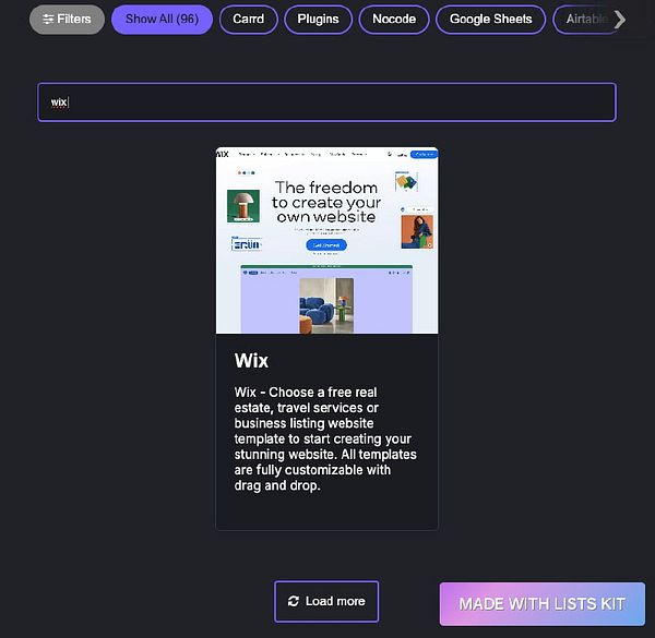 Added 1 new item Wix (www.wix.com/website/templates), a nocode website builder, to the Directory Starters directory (listskit.com/directorystarters) #listskit