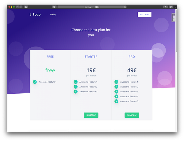 First pass on pricing page