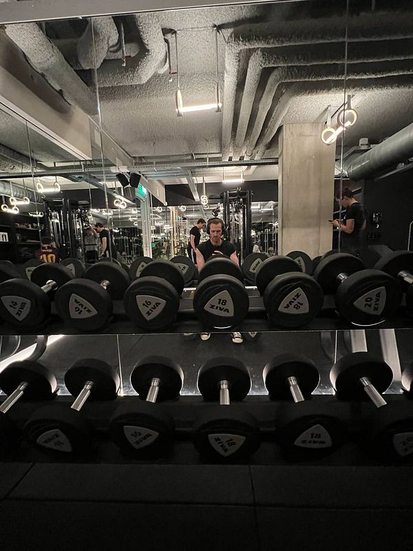 12x24/26/28kg db press 3x12x18kg seated db ohp 3x24x14kg hammer curl 3x12x54kg cable pulldown 5x5x wide grip pull up