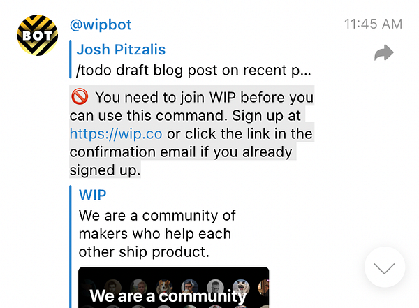 If I then try /todo then it tells me I need to sign up. I click on the link and it takes me back here.