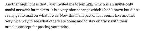 Wrote about becoming a WIP member in my newsletter