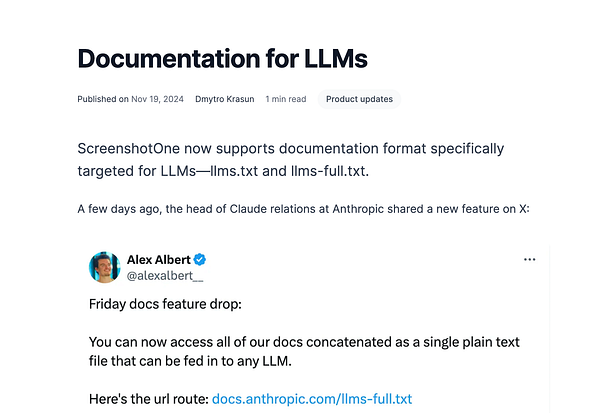 #screenshotone llms.txt feature 👉 screenshotone.com/blog/docs-f….