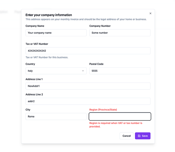 Added business address and tax information management to