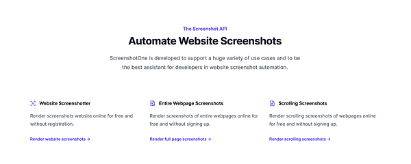 #screenshotone API with a third-party solution to render screenshots.