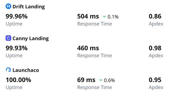 deploy comparison to the previous 24 hours (for response time and uptime) #hyperping