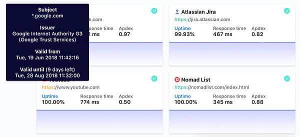 shows the color code for SSL expiry in the main dashboard #hyperping